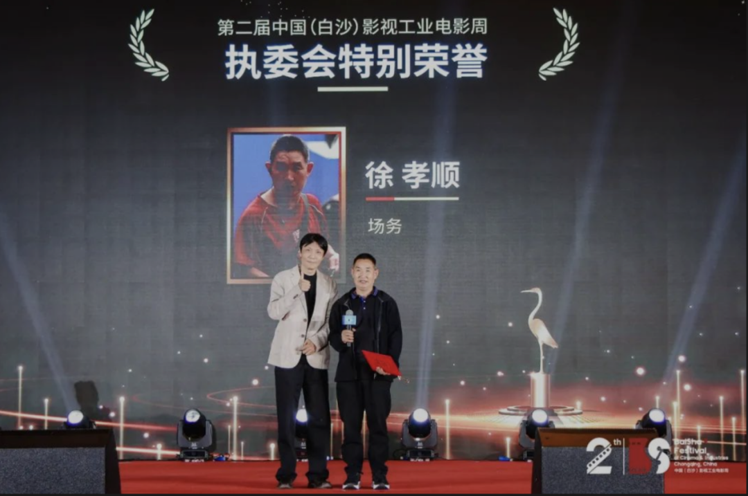 此外,第二屆中國影視工業電影周將執委會特別榮譽頒給了場務徐孝順。作為重慶本地人的徐孝順,此前是一名搬運工,而從張藝謀的《英雄》劇組開始,徐孝順開啓了自己長達二十多年的“劇組生涯”,服務了超過100個劇組。