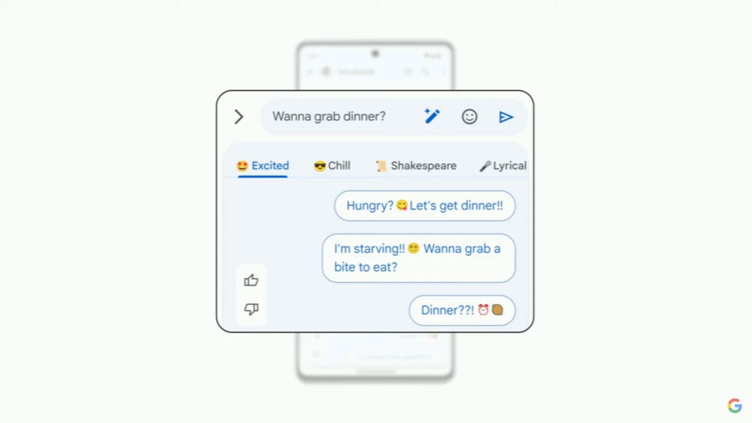 另一個功能是魔術創作器(Magic Compose),利用生成式AI幫助人們撰寫個性化信息。它可以以不同風格撰寫信息,甚至可以莎士比亞風格的信息。