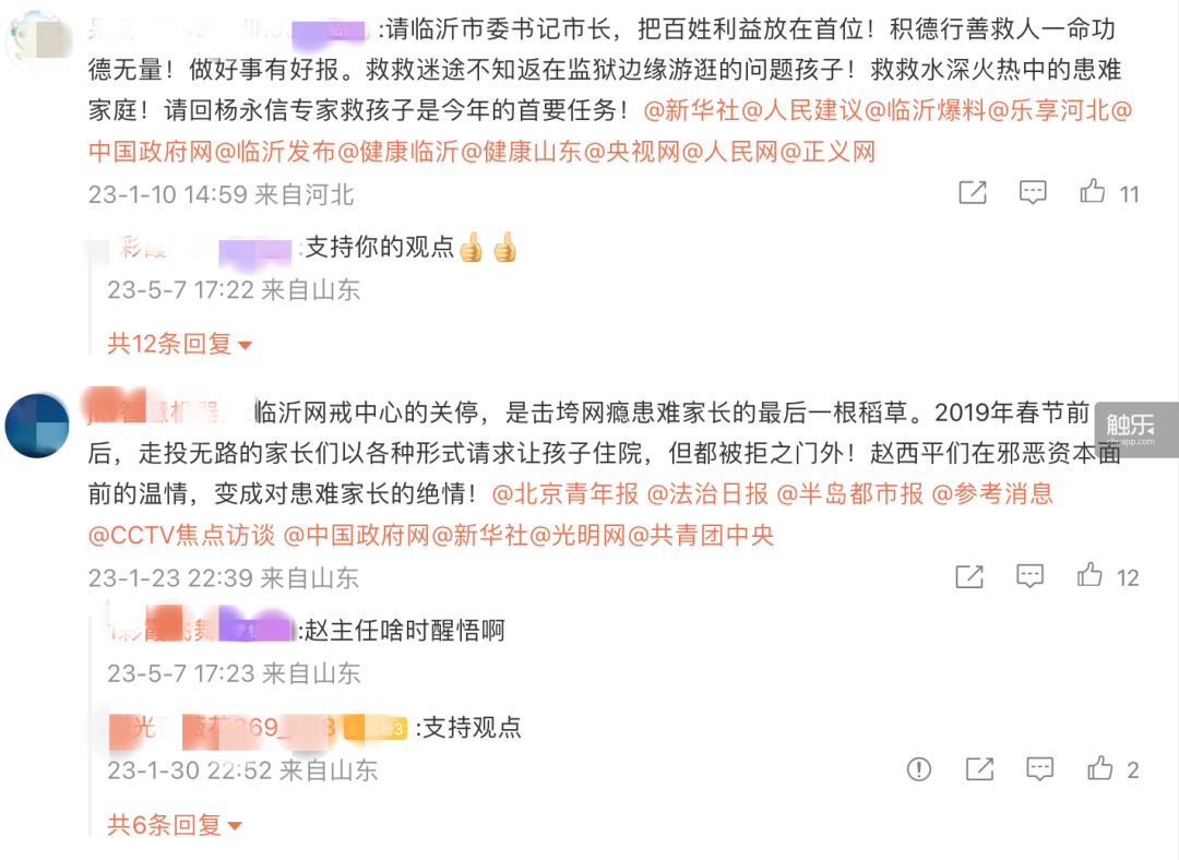 過去害怕被認出來,周齊在網上發帖時模糊了許多信息,現在他甚至做好了出庭作證的準備。他開始擔憂自己的身材,這幾年胖了不少,他想應該先減肥。另一個變化是,周齊不再對家委會的威脅表現出軟弱,他們整齊劃一的評論,以及在臨沂市政府賬號下哀求重開網戒中心的意志都無法再嚇倒他。周齊憤憤地在賬號上曬出家長們的留言,他相信這是楊永信唆使的,躲在幾百家長背後出謀劃策,但那只是虛張聲勢。“沒有電擊,哪個小孩能聽你的。”他對楊永信喊話。