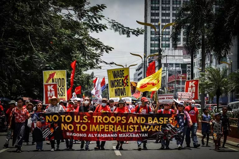 △2023年5月1日,菲民眾在美國駐菲律賓大使館前舉行抗議集會,要求“美國立即從菲律賓撤出軍隊”。
