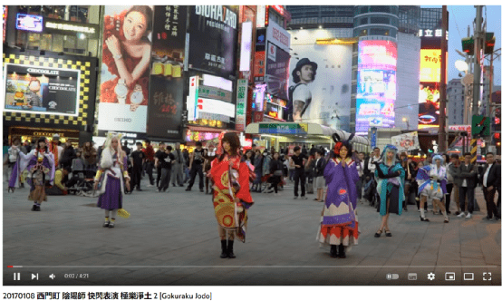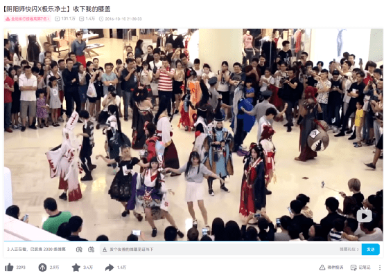 然而,這種雙廚狂喜的事情也並不是沒有發生。2016年國慶過後,一羣陰陽師的COSER在杭州西湖邊來了一場《極樂淨土》的快閃活動;2017年初,台灣省台北市西門町發生了同樣的事情。現在回過頭來看,其實還有很多場未必記錄下來的“陰陽師x極樂淨土”快閃活動,最火的二次元手遊加上最火的音樂,這種傳播力度也是空前的強大。