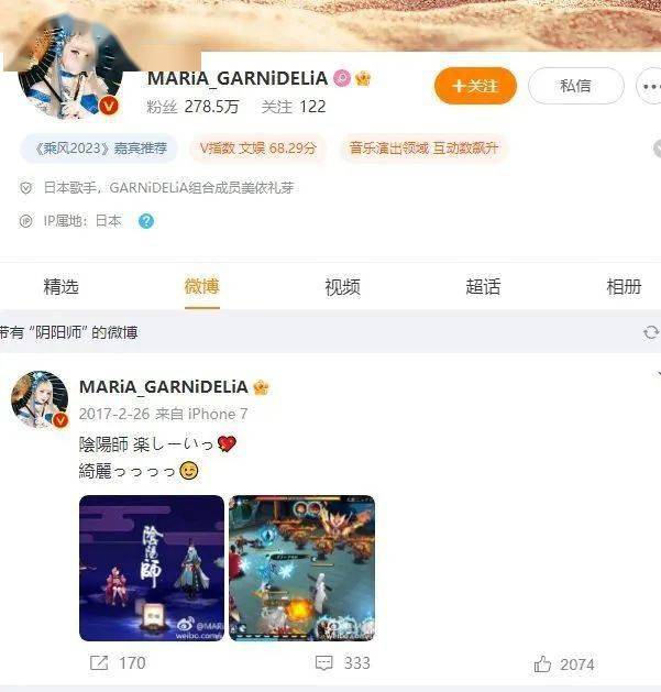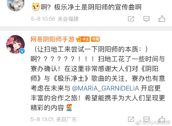 不過有意思的是,在這套文案中,用的並不是網易遊戲,而是NetEase。這種説法並不是錯誤,而是在海外市場中,網易遊戲的確是用的NetEase的名字。所以,從多方的判斷來看,《極樂淨土》的確是《陰陽師》的宣傳曲,不過這可能與國服無關,而是在海外服。而 美依禮芽當初在微博也曾曬過自己玩《陰陽師》的照片。