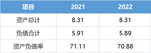 **圖表3:**2021-2022創富港(母公司)資產負債率(億元,%)