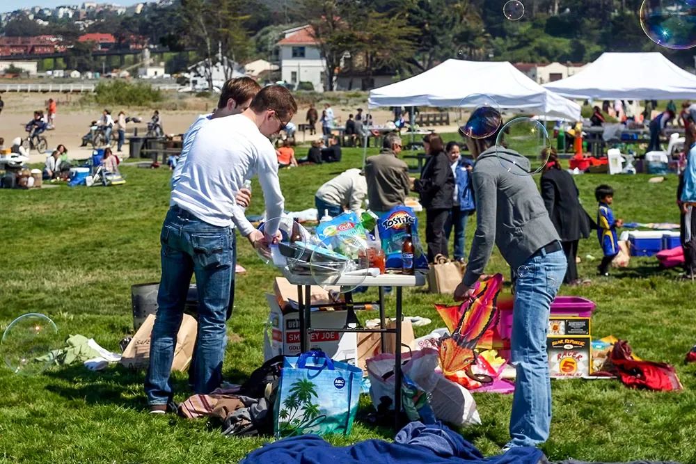 **瞄準年輕人愛熱鬧、愛聚會的特點,休閒區設置了眾多的聚會空間。**如前陸軍機場改造的克里斯菲爾德公園內設有專門的野餐區,並提供大型野餐桌、BBQ燒烤場地。