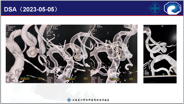 結合動脈瘤的位置、形態、大小,在徵得家屬同意後,張琪博士決定為患者實施瘤內擾流裝置WEB植入術。經過縝密的術前計劃和精細的術中操作,張琪博士在周林華醫生、劉春醫生及醫護團隊通力配合下,成功為該患者進行了手術。