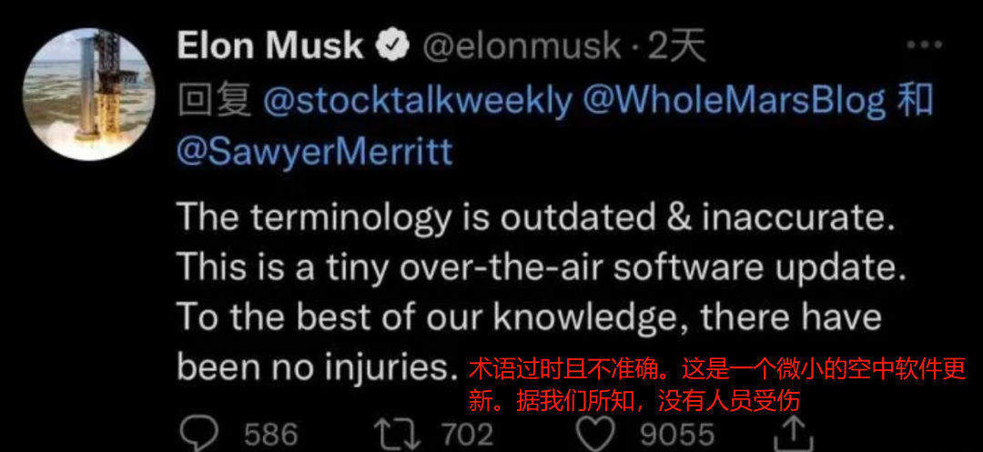 馬斯克不止一次吐槽“NHTSA的術語已經過時且不準確,在美國的多次召回,馬斯克都否認三連:不是召回,沒人受傷,只是軟件升級。