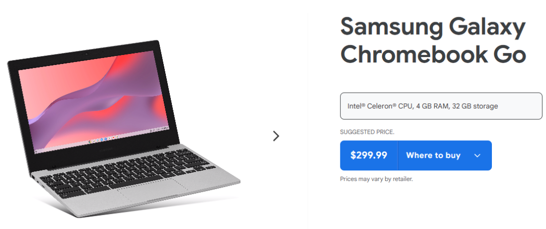 當然,也有三星 Galaxy Chromebook Go 這種只要 299 美元的極致丐版電腦,兩千塊出頭可以拿下。