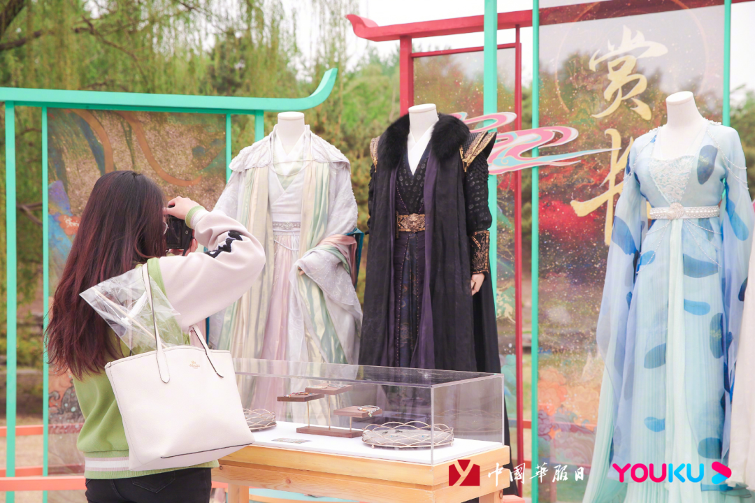 七彩丹霞的絢麗、月牙泉的清冷、莫高窟的神秘、榆林窟的厚重,紛紛以色塊和紋路的形式濃縮在了主角的服裝之上,第一次讓i仙俠人士看到了東方仙俠的正確打開方式,更在全網引領了一種以傳統文化為內核的全新國潮。中國華服日當天,優酷《長月燼明》開啓線下體驗展,展現敦煌風服化道之美的同時,也在向更多的年輕人推廣中國華服日。