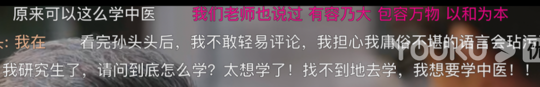 第一集尚未過半,優酷上有關中醫發展為何緩慢、如何發揚中醫、中醫發展的障礙在哪裏的彈幕已經討論出了七八個方向,給出了三四種解決方案。