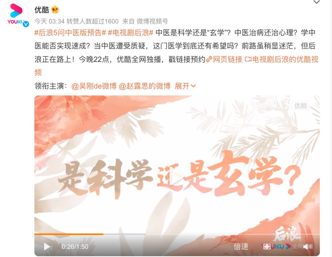 《後浪》讓中醫真破圈:優酷再次打破Z世代和傳統文化的結界_風聞
