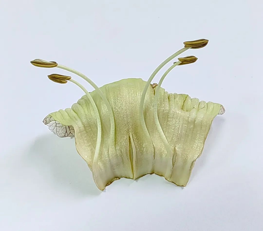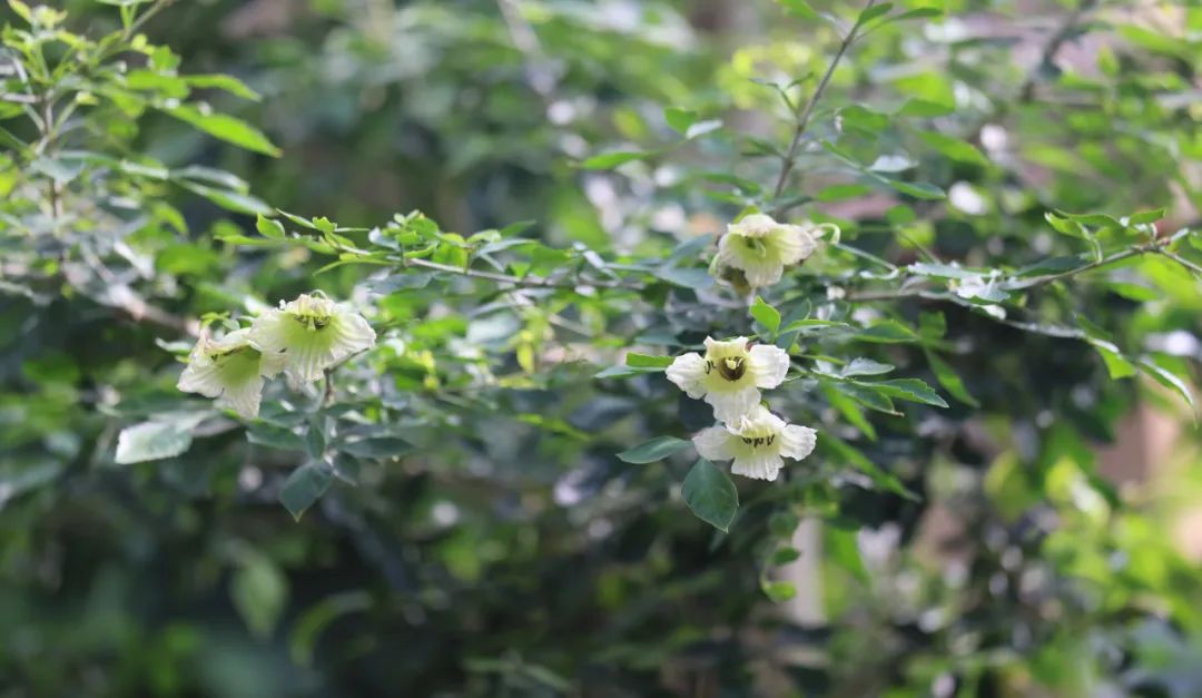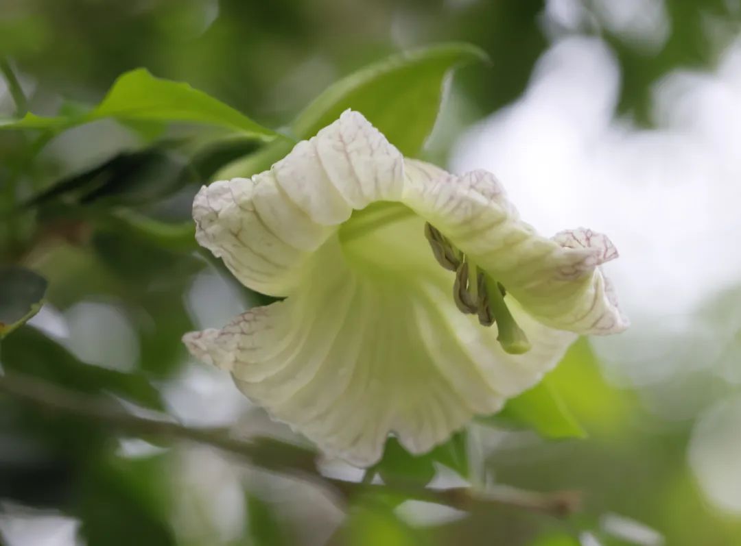 食用蠟燭樹綠白色的花,花冠朝下,花萼側開