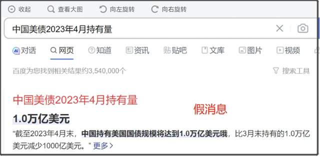 但這個回答是明顯錯誤的,因為我們3月末持有美債是8693億美元,而這個回答裏説是1.1萬億美元,顯然是胡謅的數據。