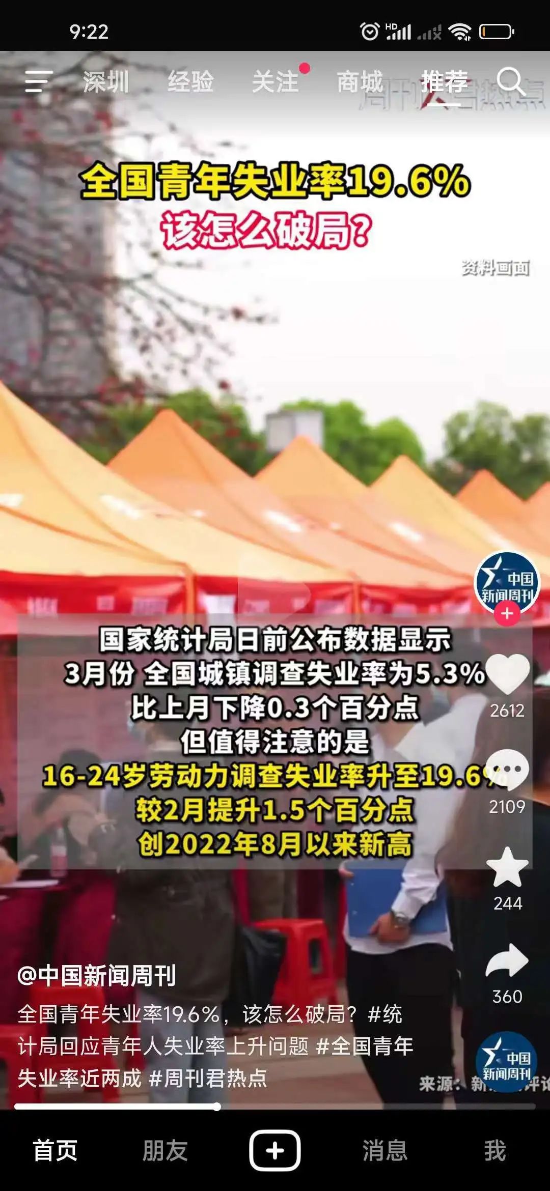 雖説城鎮青年的失業率收到就業環境、世界經濟,中美脱鈎等等影響。