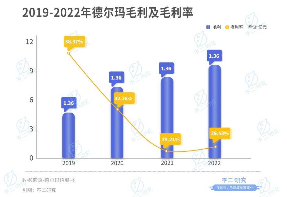 德爾瑪的毛利率水平呈明顯下降趨勢,德爾瑪招股書將其毛利率下降歸因於原材料漲價和業務結構變化。