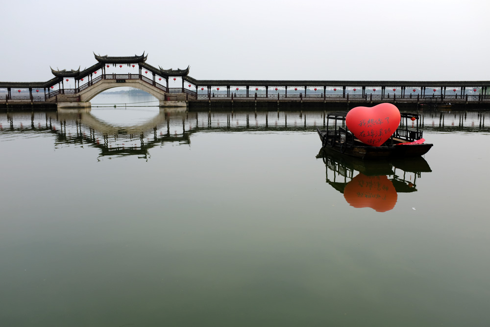 鎮口有一條長長的堤道,把鎮口水灣的兩口連起來了,又是很好的景觀,估計是後來開發旅遊的時候弄的,非常不錯的設計