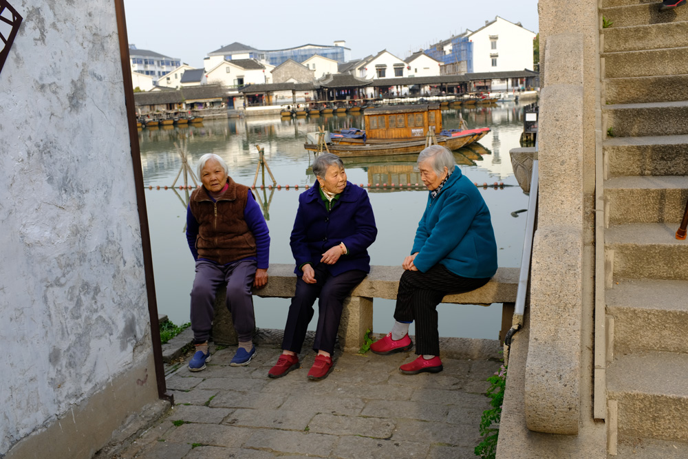 村口看到三個老太在拉家常,很閒適的樣子,口音接近蘇州