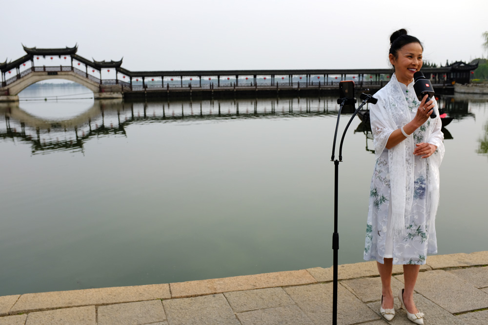 農婦搖船而過,這不稀奇,稀奇的是她們都一面搖船一面唱歌。什麼歌都有,唱的水平也不怎麼樣,但平添了很多活氣,這是比其他水鄉古鎮強的地方