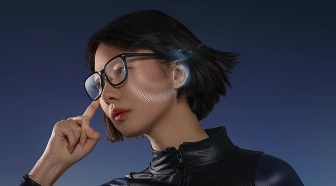 另外,這款眼鏡本身是一個骨傳導眼鏡,技術核心在於用一種新的震動發聲裝置,採用了振子專利技術,搭配貓耳算法,讓設備不入耳就能聽到聲音,並且能夠有更小噪音、更低失真的聲音表現。