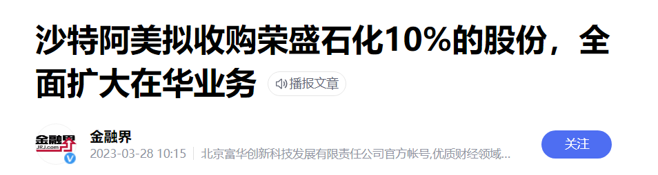 今年以來,沙特先是收購民營煉化龍頭榮盛石化的股份,以36億美元入股10%,溢價88%。