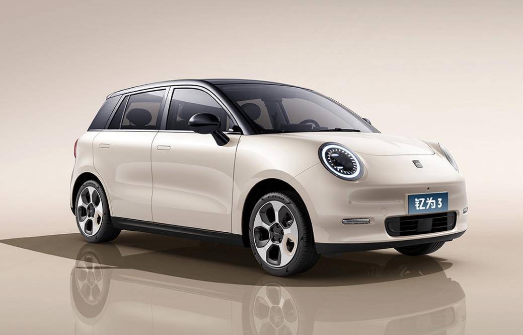 從外觀來看,釔為3非常符合純電小型車的設計風格,“泡泡宇宙美學”很時尚可愛。特別是“天使之眼”圓形大燈,內嵌137顆LED燈珠,內圈24顆柱形燈條,顯得炯炯有神,車身側面非常簡潔,“圓耳”後視鏡搭配隱藏式門把手,圓潤飽滿流暢。