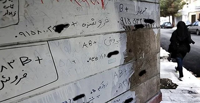 (伊朗牆上的賣腎廣告:女,A型血,27歲,電話……)