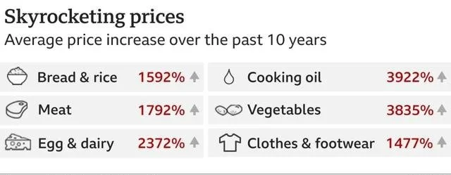 當地超市一瓶洗髮水的價格在一週內漲了近60%,肉價則漲了10倍有餘。