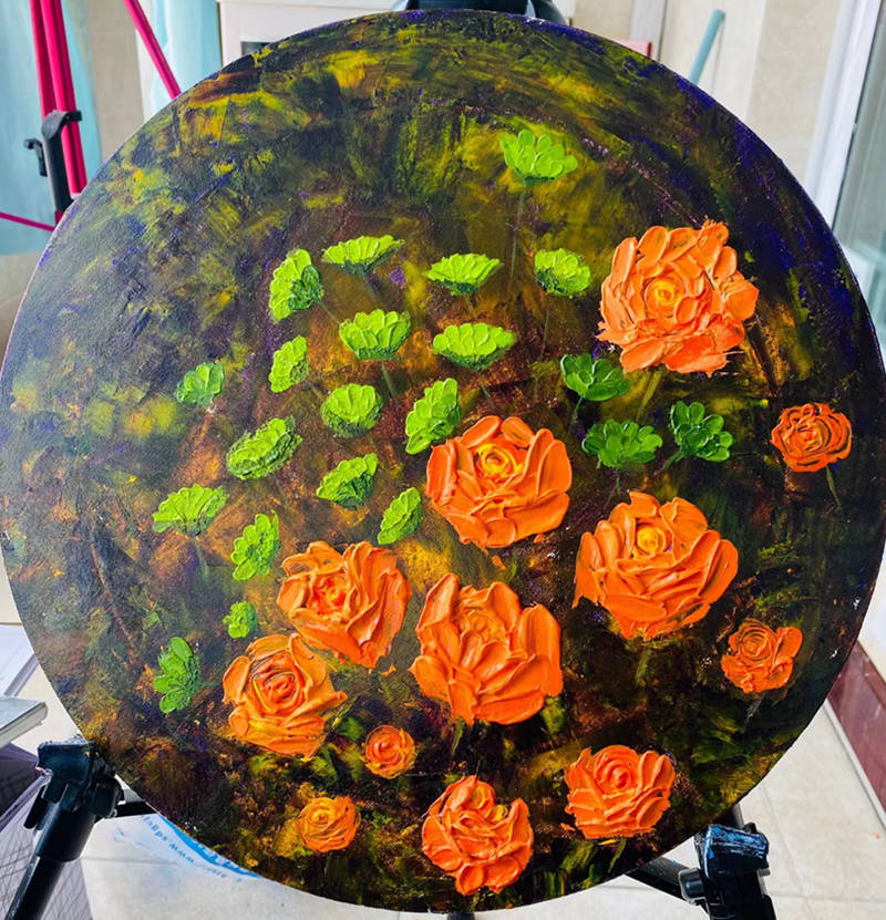 我的畫沒有什麼固定的風格,我喜歡畫不同的東西,我喜歡研究我的顏料,從丙烯到油畫,從水粉到水彩!我喜歡我的雙手,從右手到左手,從左手到右手,有人説你就是有天賦,其實我不懂,反正是畫畫治癒了我。我愛畫畫,我喜歡畫畫時安靜的自己。很單純地想畫畫,我見過最美的風景,我心裏有一片繁華,我想自己好好畫畫,可以畫出內心的繁華。我的作品很亂但是包含着我對萬物的熱愛,因為亂,所以我可以畫很多東西。