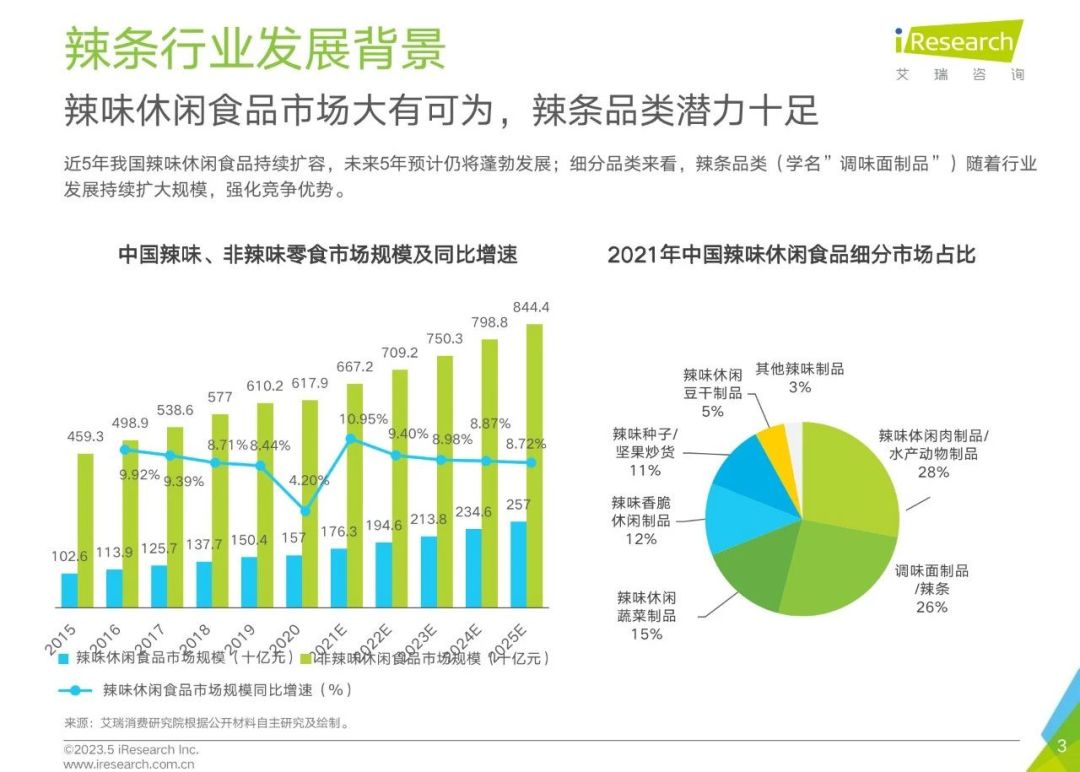 近日天貓聯合艾瑞諮詢發佈的《2023年辣條行業發展趨勢報告》(以下簡稱“報告”)顯示,近5年我國辣味休閒食品持續擴容,未來5年預計仍將蓬勃發展。