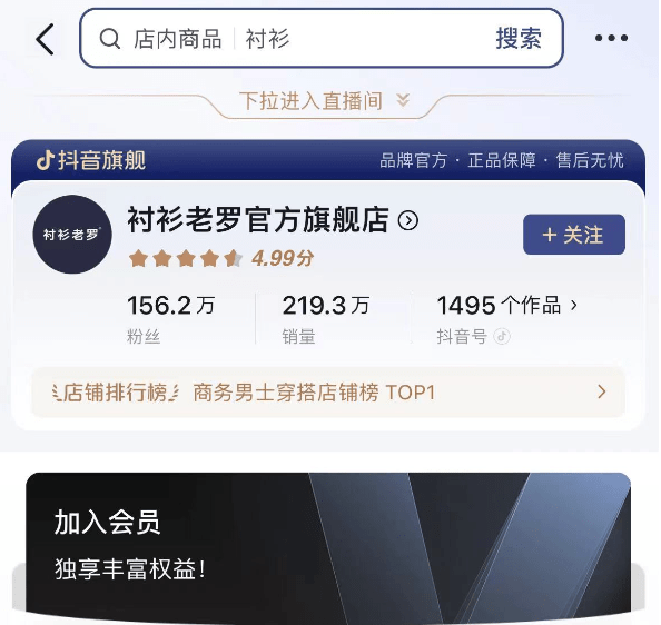 有老羅對襯衫行業十年如一日的深耕,還有其團隊認真運營會員、同步經營內容場與貨架場,襯衫老羅才能做出這款解決用户痛點的衣服,最終在抖音電商成為“爆款”。