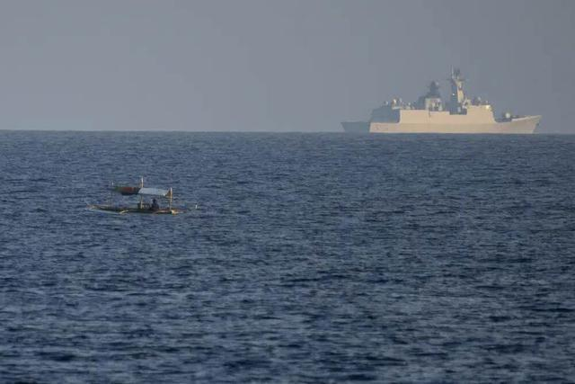 沒有站在一線“互相推搡”,不代表沒有做好戰鬥準備。這次仁愛礁對峙,菲律賓海警船上的美聯社記者就拍到了在遠方的054A護衞艦。如果雙方對峙變成了衝突,就是海軍艦艇上場的時候了。