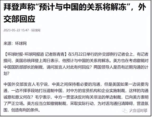 拜登稱“預計與中國的關係將解凍”,拜登着急,話不可信_風聞