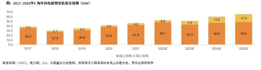 其中,海風或會成為未來海外市場的增長主力,據天風證券預測,在2021-2025年間,陸風的CAGR為4%,海風CAGR則高達43%。但值得一提的是,雖然歐洲是全球最大的海上風電市場,但歐洲海風也早已進入了“零補貼”甚至是“負補貼”時代。