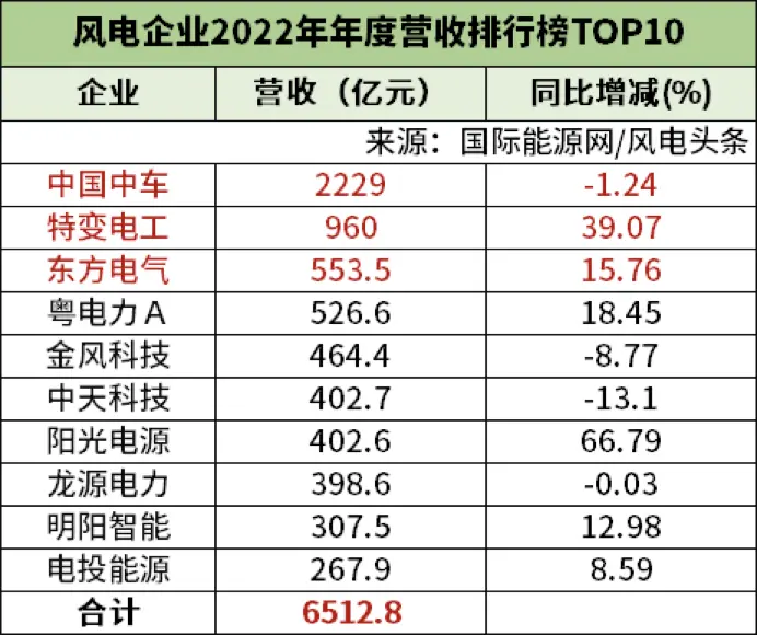 同樣面臨收入下滑的還有中國企業,2022年營收前十的中國風電企業中,有4家出現營收同比下滑。