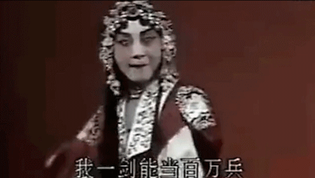 唸白前的起手,唸白的語氣(以及背後雜兵們站姿的“抱架”):