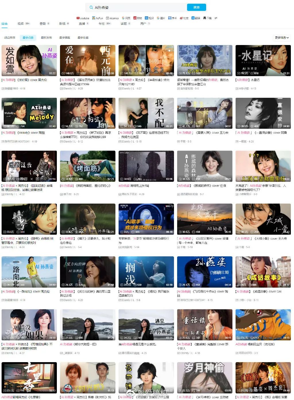 AI孫燕姿的好幾首都有百萬點擊。