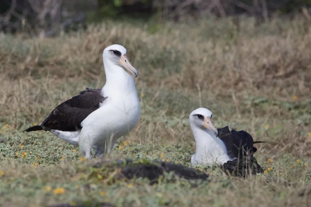 一對正在休息的信天翁,好奇地觀望前方走過的徒步者。©大狼