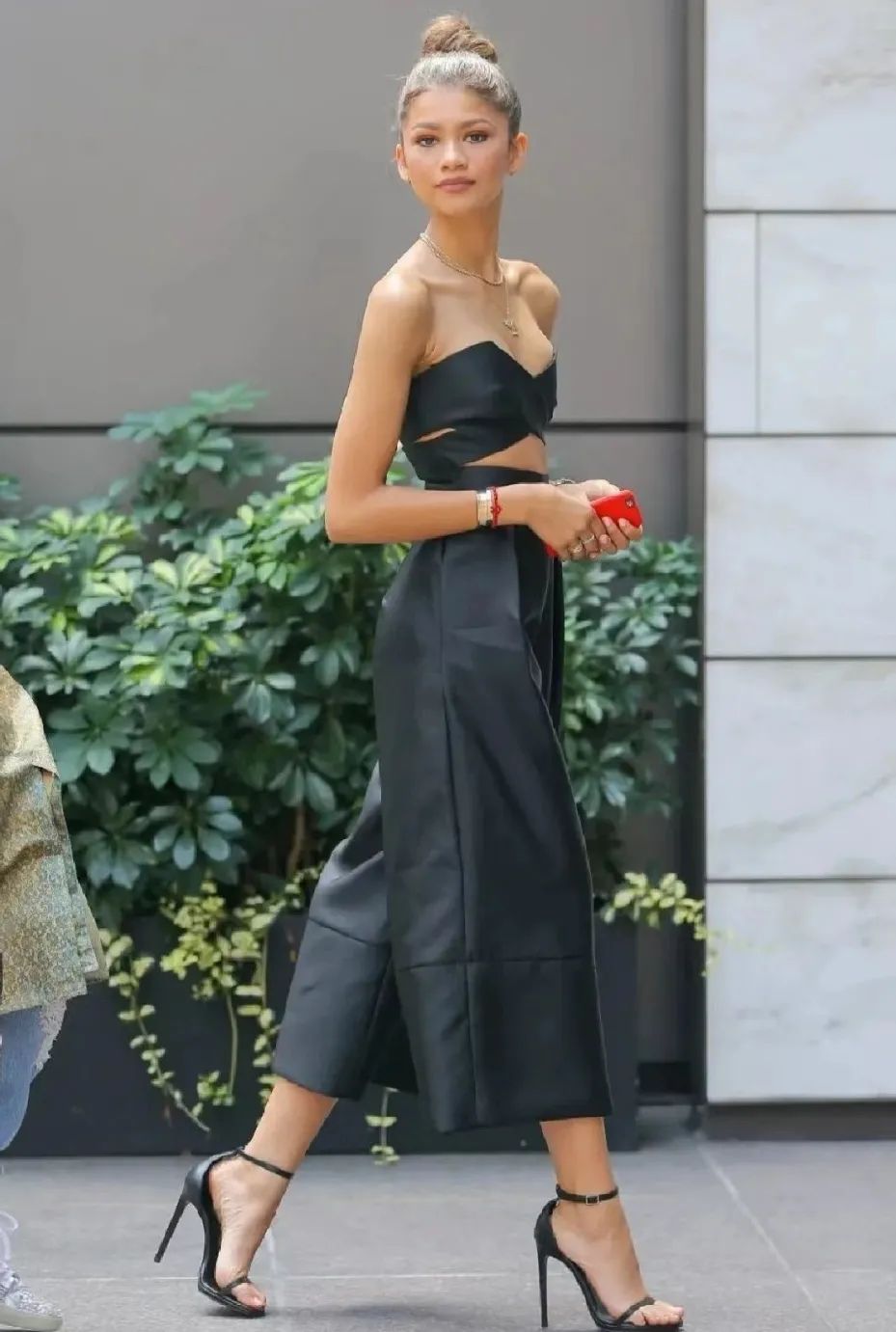 她憑藉自己的身材優勢,結合硬朗的長相,為自己打造出了一種別樣的“酷拽”風情。
