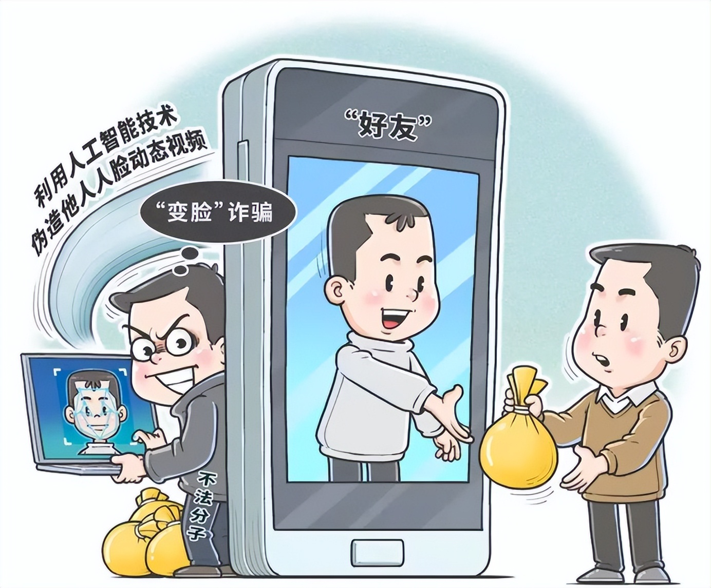 AI換臉軟件實在是太智能了,沒有做不到,只有想不到。據5月23日媒體報道:“平安包頭”公佈一起使用AI技術詐騙案件顯示:高科技犯罪手段也隨AI的認知不斷更新。該案中,福州一高科技公司老闆被騙子通過AI換臉技術,佯裝成好友騙走其430萬元。“AI詐騙”隨之成為焦點的同時,折射出科技競爭下的技術管控缺失問題。