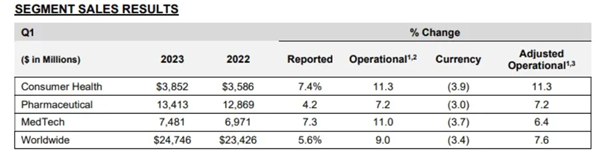 值得注意的是,2023年第一季度強生在醫療技術業務的銷售額達到74.81億美元,同比增長7.3%,在一定程度上,收購Abiomed也驅動了這一增長。