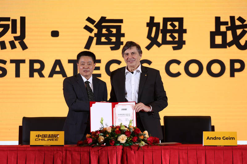 大會現場,伴隨着一條石墨烯之父獲得諾貝爾物理學獎及到訪超威彩蛋視頻的襲來,諾貝爾物理學獎獲得者、石墨烯之父安德烈·海姆作為本次會議的重磅驚喜之一震撼空降,超威集團研究院院長劉孝偉與石墨烯之父安德烈·海姆教授現場簽署了合作協議,夯實“正宗石墨烯,核心在超威”的行業領先地位。