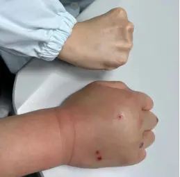 有些人,可能會出現局部小水皰、小血皰,整個手部腫脹發麻,嚴重時還會發燒、頭暈頭痛——