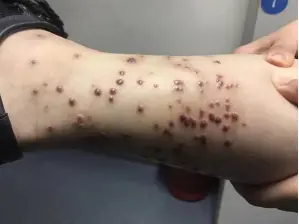 與節肢動物(如蚊、蜱、飛蛾、蟎蟲、隱翅蟲、松毛蟲)叮咬有關的皮膚炎症反應。