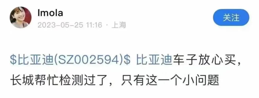 長城作為一個專業車企,把比亞迪一堆車買回去全面檢測,最後只舉報了一個環保方面的問題……