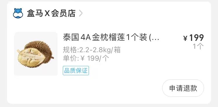 很愛吃榴蓮的英子(化名)也覺得自己今年的榴蓮消費有點猛,“前兩年總共只買了一個,現在聽同事説盒馬會員店的品質不錯,就立馬去閒魚買了一個會員店的一次性會員,買了個199塊的。”。
