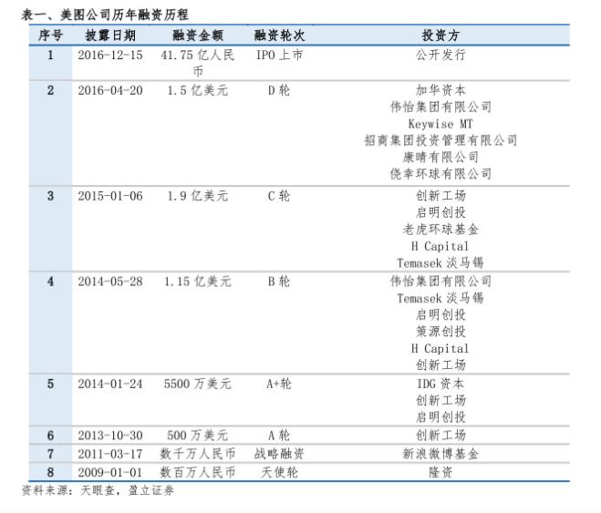 (美圖歷年融資圖,圖片來源:盈立證券)