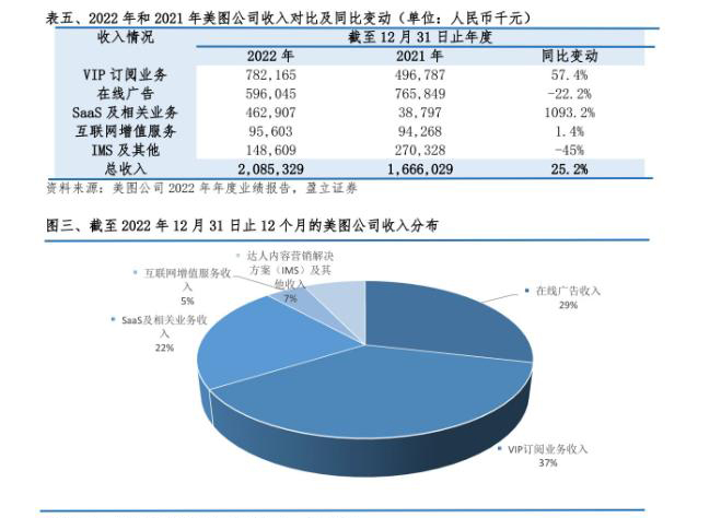美圖公司2022年財報顯示,公司全年實現總收入20.85億元,同比增長25.2%,實現經調整後歸屬於母公司權益持有人的淨利潤1.11億元,同比增長29.9%。截至2022年12月底,美圖公司各平台總月活數量同比增長5.3%至2.43億,VIP會員數量超560萬,整體付費滲透率達到2.3%,部分產品付費滲透率甚至超過10%。VIP訂閲業務實現收入7.82億元,同比增長57.4%,再創新高。