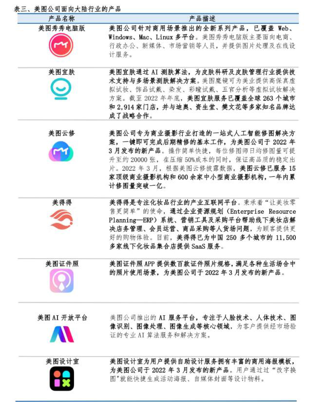 (美圖的AI產品矩陣,圖片來源:盈立證券)