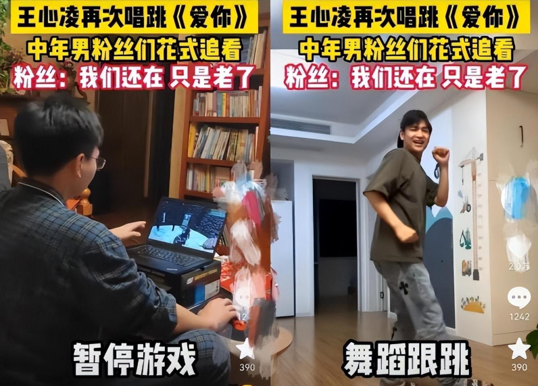 王心凌和楊超越當時亦是如此。即使時隔許久,肯定還有人記得當初刷屏熱搜的“楊超越男粉軍訓式應援”,以及那場吸引了倩碧、康師傅、騰訊課堂、騰訊體育等品牌入局的“超越杯”編程大賽。王心凌男孩的出圈之路,又怎麼少的了一個個中年男人在客廳等場所裏用力跳着《愛你》的“優美舞姿”?