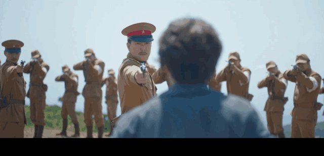初到1938年,男主就大展身手了一番,面對舉槍瞄準自己的一隊日軍憲兵,不慌不忙地跟對方嘮起了家常,只不過男主説韓語、日軍説日語,大家各嘮各的。