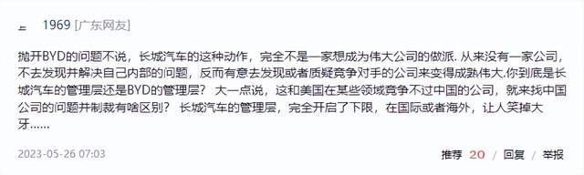 **二、舉報行為正常,企業沒有問題,不用怕舉報!**有反對的,同樣也有支持的。與反對舉報行為的人不同,支持長城舉報比亞迪的公眾,似乎説的也有些道理。